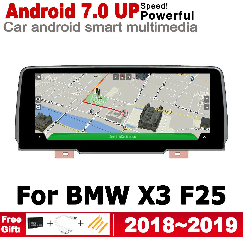 IPS HD Screen DSP Stereo Android 8.0 up Car DVD GPS Navi Map For BMW X3 F25 2018~2019 EVO 2 DIN mul